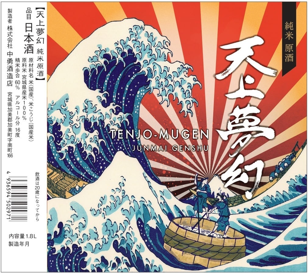お燗にするとまろやかさが増し、米の甘みと酸がふくらみます。ぬる燗ではやさしく、熱燗ではキレのある余韻に。秋冬の肴や煮物と相性抜群。心と体を温める、至福の一本です。ラベルには葛飾北斎の浮世絵「神奈川沖浪裏」を背景に、本格的な酒造りのシーズンに突入していく様をイメージ致しました。